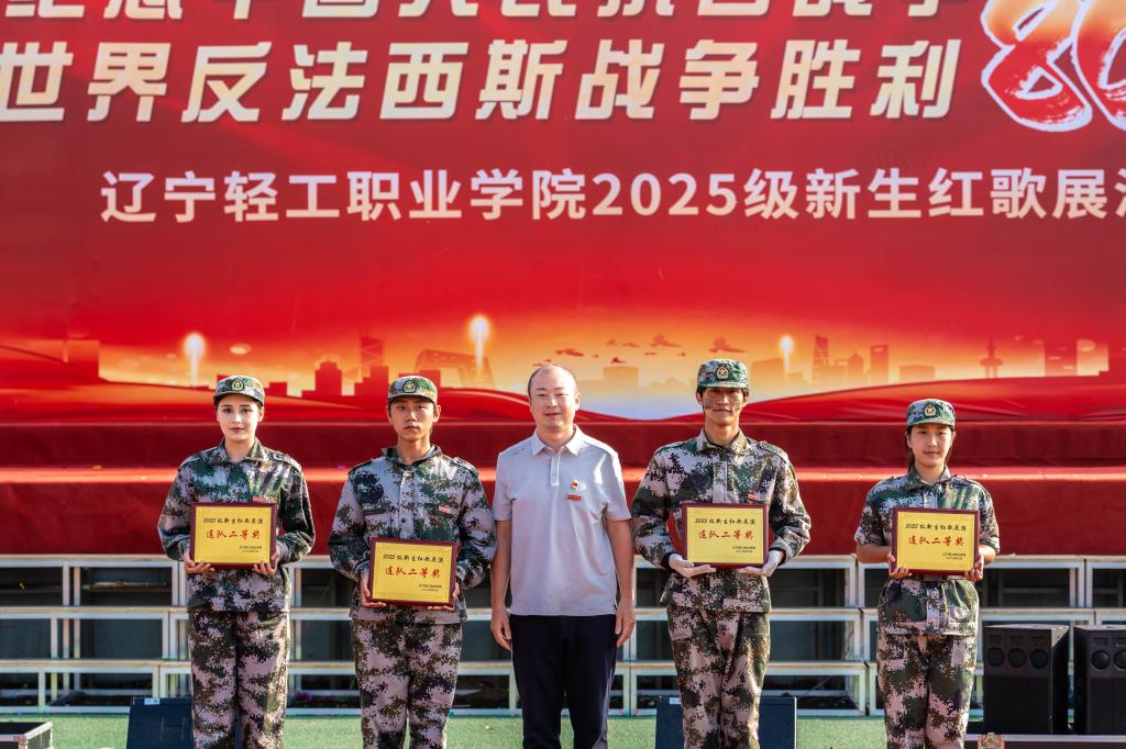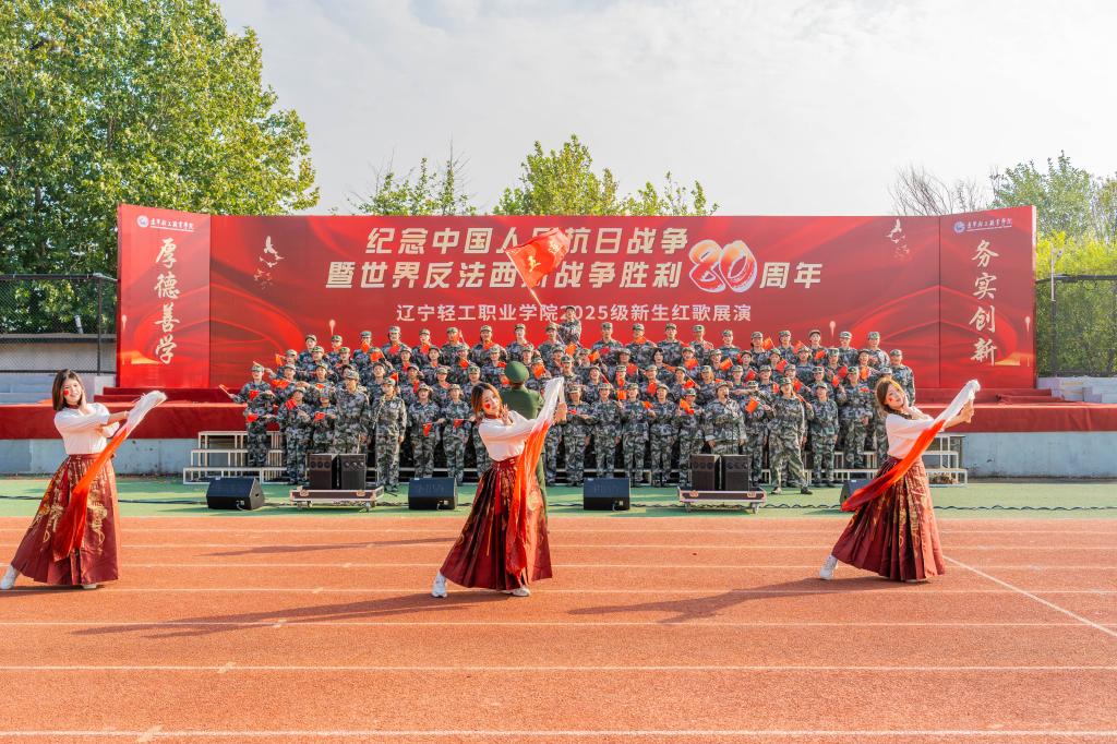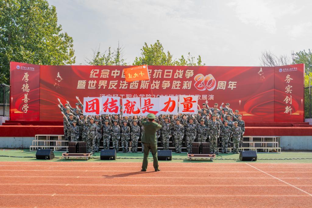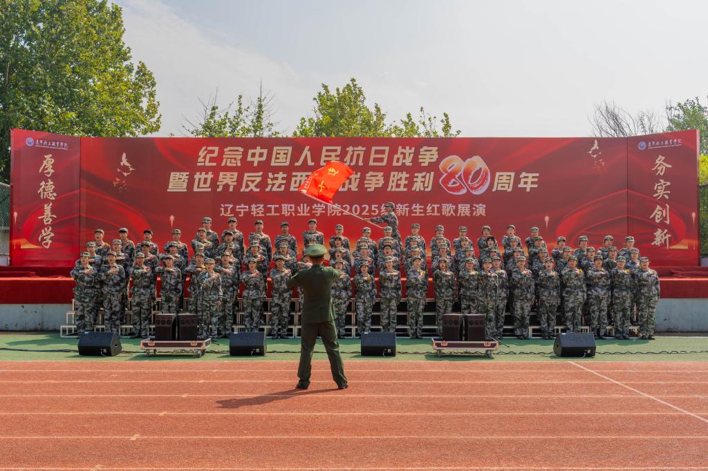 来自六个二级学院营队的34支连队依次登台,深情演绎了《歌唱祖国》《强军战歌》《中国人民解放军军歌》《打靶归来》《我爱你中国》等多首红色歌曲。同学们精神饱满、队列整齐、歌声嘹亮,用真挚的情感表达对党和国家的无限热爱,展现了辽轻学子昂扬向上的精神风貌和浓厚的家国情怀。