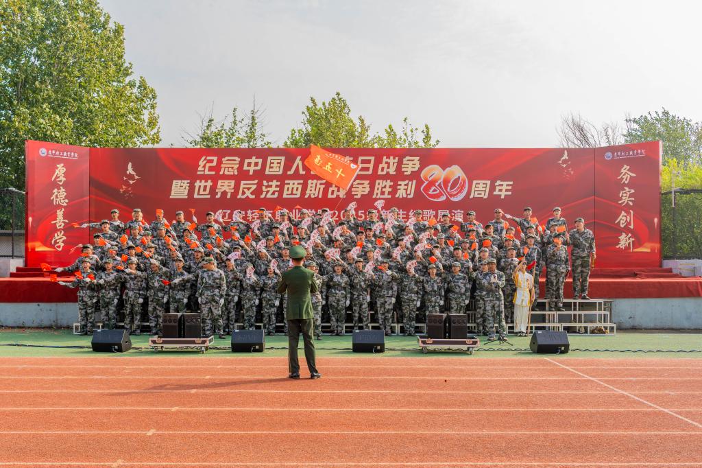为纪念中国人民抗日战争暨世界反法西斯战争胜利80周年,深化爱国主义教育,增强学生集体荣誉感与团队协作精神,丰富军训期间的文化生活,9月24日下午,学院在运动场隆重举行2025级新生红歌展演。学院纪委书记鲁凤宇、副院长刘秀英出席本次活动,学生处、团委负责人以及各二级学院党总支副书记、全体新生参加展演。