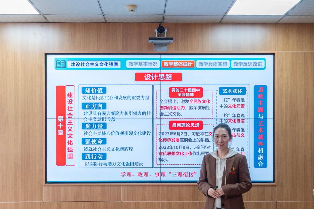 备课会上,马克思主义学院负责人李兆芳汇报了马克思主义学院建设工作整体情况。青年教师刘梦祺以《推动中华优秀传统文化创造性转化和创新性发展》为主题开展现场教学展示。习近平新时代中国特色社会主义思想概论教研室主任赵紫薇围绕《建设社会主义文化强国》进行说课展示,从课程目标设定、教学重难点拆解、教学方法选择、教学评价设计等方面进行了深入阐述。马克思主义学院副院长刘慧颖聚焦课程建设重点任务,全面汇报了《习近平新时代中国特色社会主义思想概论》课程建设的整体情况和打造优秀在线精品课程规划情况。