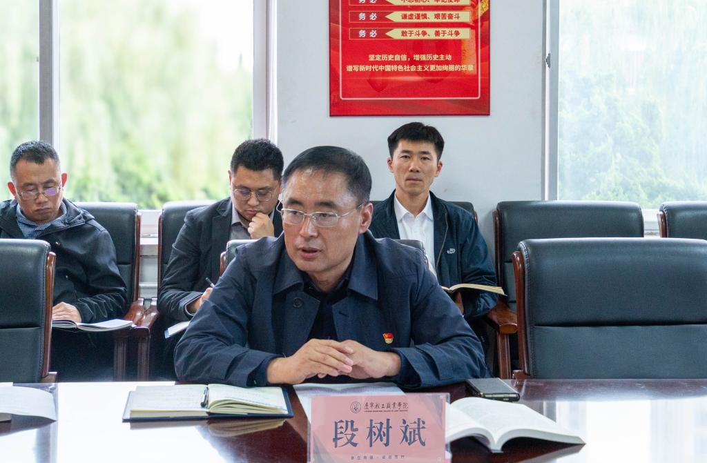 段树斌肯定了马克思主义学院在课程建设与教学实践中的创新探索,并围绕思政课高质量发展提出三方面要求:一要在“精准转化”上出实招。要严格落实“四备”原则和“五统一”要求,深入研究教材体系,准确把握习近平新时代中国特色社会主义思想的核心要义,做好从“教材体系”到“教学体系”的深度转化。二要在“改革创新”上求突破。要树牢以学生为本的理念,推动教学从“教师怎么教”向“学生怎么学”转变。积极推广研讨式、案例式、体验式教学方法,善用视频资源和实践场景,把“辽宁六地”红色文化、学校发展历史、优秀校友事迹融入教学,让课堂“活起来”,让学生“思考起来”。三要在“协同联动”上聚合力。思政课建设并非马克思主义学院“一家之事”,而需要凝聚各部门、各专业力量,构建全员、全过程、全方位的思政育人格局。