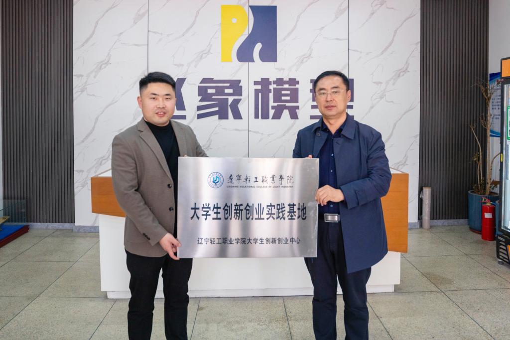 交流现场,段树斌代表学校授予大连飞象模型设计有限公司“辽宁轻工职业学院大学生创新创业实践基地”。该基地的成立,标志着双方合作迈入新阶段,并将为学校学子提供多元化的创业实践平台、高水平的创业孵化服务,有力推动学校第二课堂建设与“双创”工作落地见效。
