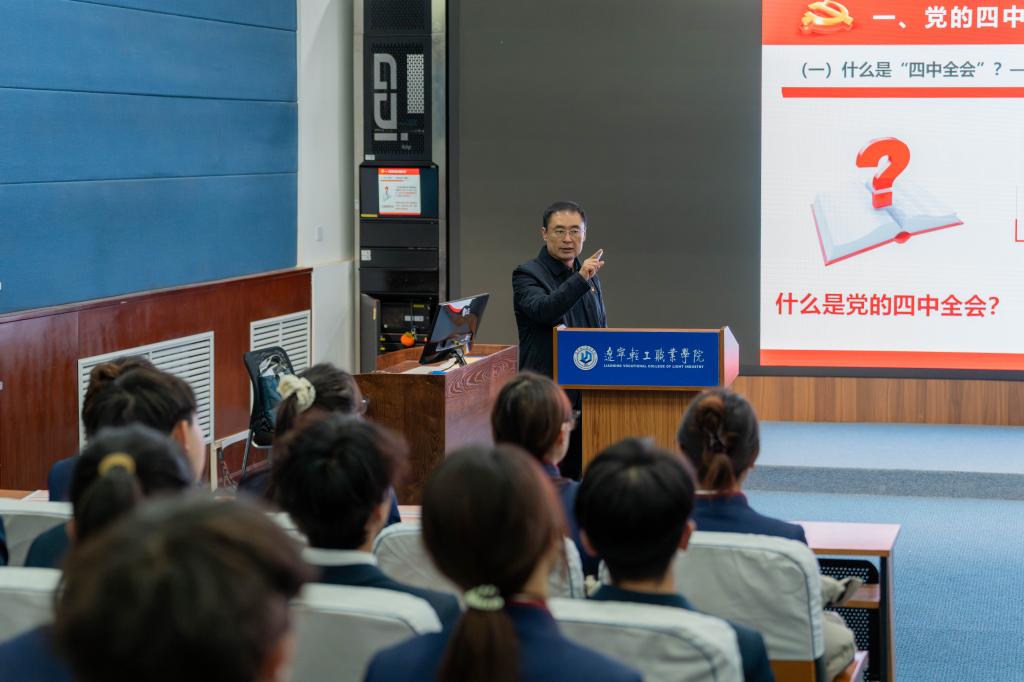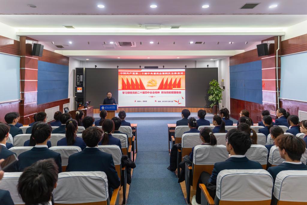 段树斌围绕党的二十届四中全会召开的重大意义、“十五五”时期发展方位与目标任务、当前国内外形势与战略机遇、新时代青年使命担当等方面展开讲解。他立足全会审议通过的《中共中央关于制定国民经济和社会发展第十五个五年规划的建议》核心要义,全面阐释了未来五年国家发展的指导思想、重大原则与战略部署,并结合“十五五”规划远景目标,深刻剖析了新征程上学校在服务国家战略、培育时代新人等方面肩负的历史机遇与使命担当。