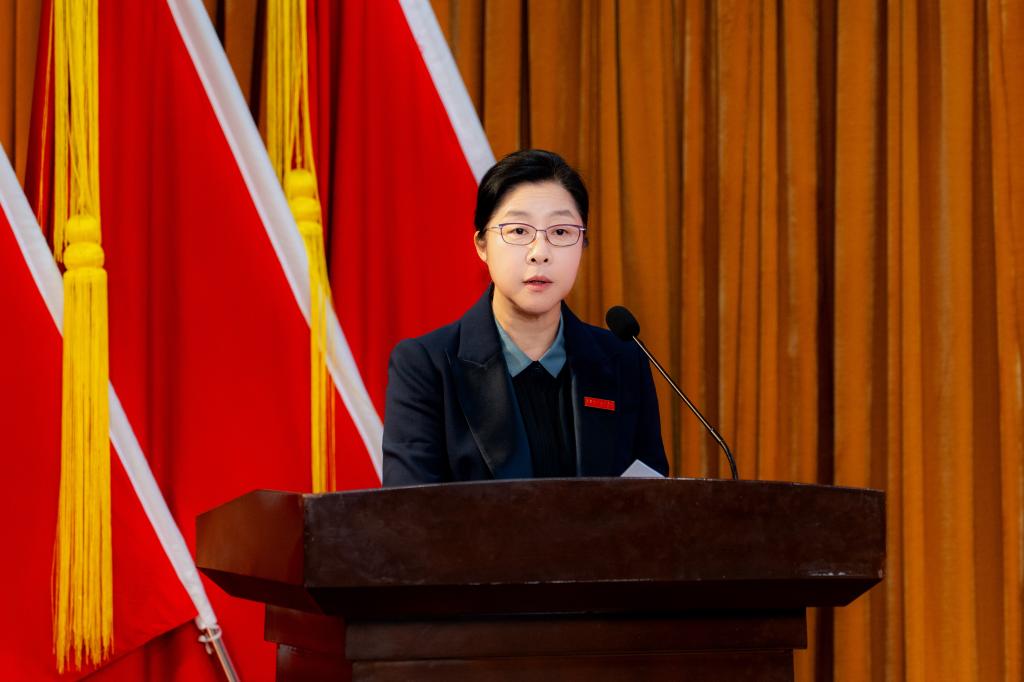 石竹青代表学校党委向大会的成功召开、向新当选第一届妇联执行委员会全体委员表示祝贺,并向区妇联的关心支持表示感谢。她充分肯定了学校女性师生为学校事业发展作出的卓越贡献,就妇联组织建设和妇女工作发展,她提出三点期望:一要彰显“思想之美”。要以习近平新时代中国特色社会主义思想为指引,深学党的创新理论、筑牢信仰之基,将个人理想融入党和人民事业、学校发展大局;二要展现“圆融之美”。要坚持终身学习,掌握平衡个体追求与家庭责任的融合智慧,妇联组织要持续为女性成长赋能,助力其发挥建设性力量;三要绽放“开创之美”。要以跨界勇气、探索锐气和创新思维,在各领域开拓进取、勇攀高峰,激发创造潜能,推动女性从发展受益者转变为新趋势洞察者、新模式探索者、新风尚引领者,共同塑造更加平等美好的未来。