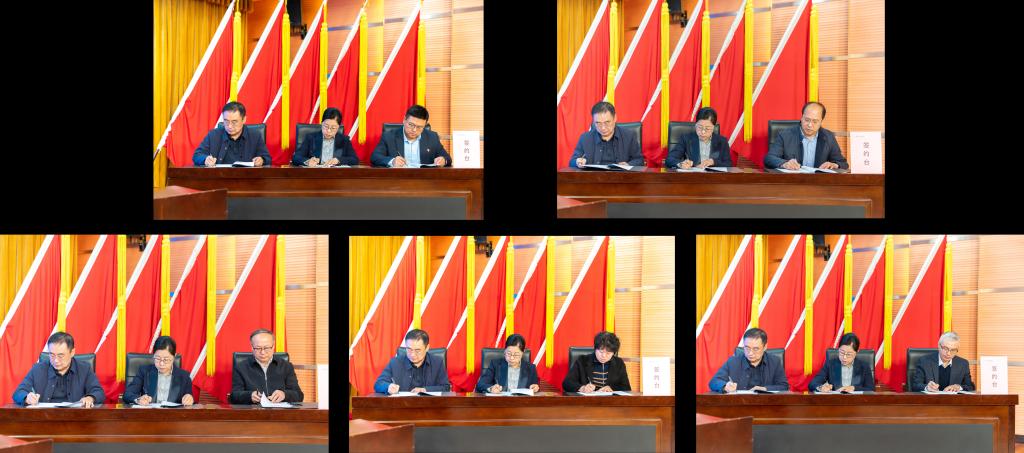 会议现场,石竹青、段树斌与分管校领导签订校园安全工作目标责任书。郝祥云、吕振凯、鲁凤宇、刘秀英、化松收与分管部门负责人签订校园安全工作目标责任书。