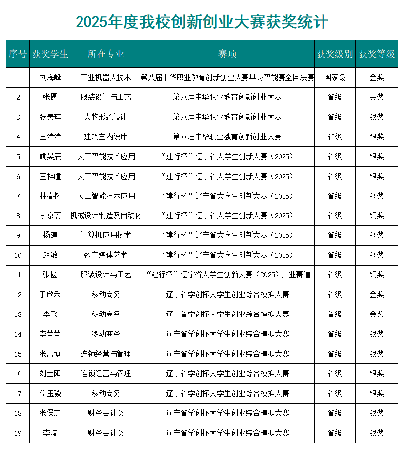 9月22日,辽宁省教育厅公布了“建行杯”辽宁省大学生创新大赛(2025)获奖名单,我院师生在本届大赛中表现优异,获银奖2项、铜奖5项。