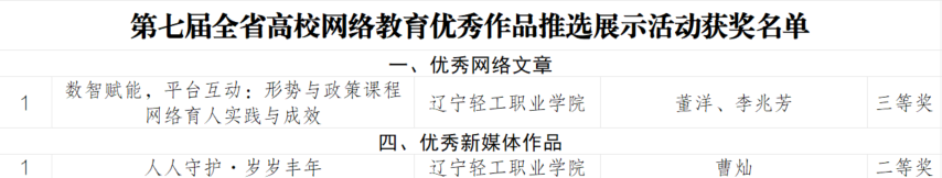 在由省委教育工委主办,辽宁省高校网络思想政治工作中心(辽宁省易班发展中心)、辽宁大学、沈阳师范大学、沈阳建筑大学、辽宁科技学院、大连艺术学院承办的第七届辽宁省大学生网络文化节和全省高校网络教育优秀作品推选展示活动中,我校师生斩获多个奖项。