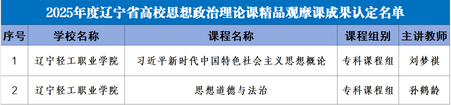 近日,辽宁省教育厅公布2025年度辽宁省高校思想政治理论课精品观摩课成果认定名单,我校2门课程成功获评省级精品观摩课。