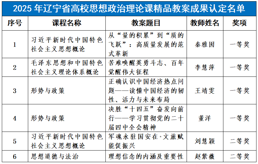 喜报 | 我校6门课程获评2025年辽宁省高校思想政治理论课精品教案